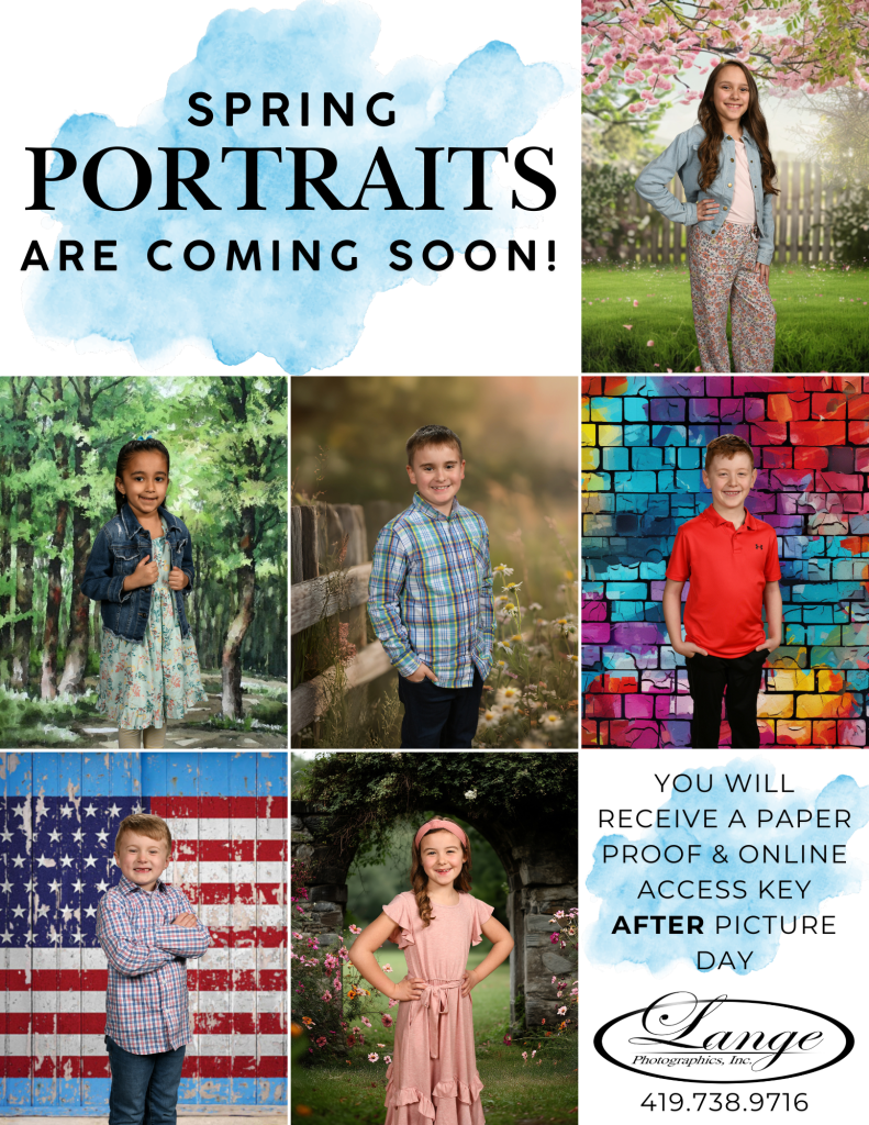 Students are photographed in a 3/4 pose. Proofs are sent home so parents can view the portraits prior to purchasing. Contact our representative about scheduling your school photos today at brigitta@langephotographics.com.